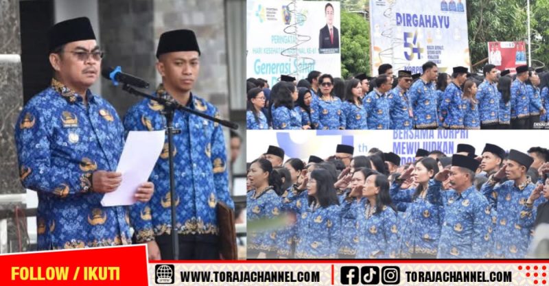 Torajachannel.com, Makale–Pemerintah Kabupaten Tana Toraja menggelar Upacara Peringatan Hari Ulang Tahun (HUT) ke-54 Korps Pegawai Republik Indonesia (KORPRI) yang dirangkaikan dengan Puncak Peringatan Hari Kesehatan Nasional (HKN) ke-61 dan Hari AIDS Sedunia.