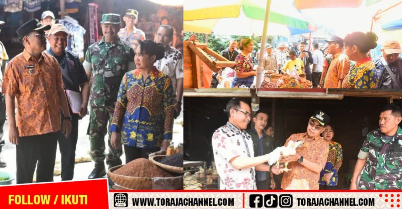 Torajachannel.com, Makale–Bupati Tana Toraja dr. Zadrak Tombeg, Sp.A bersama Ketua TP PKK Kabupaten Tana Toraja Dr. Erni Yetti Riman, SKM, M.Kes melakukan inspeksi mendadak (sidak) untuk memantau harga dan ketersediaan bahan pokok di Pasar Makale, Kecamatan Makale, Jumat (6/3/2026).