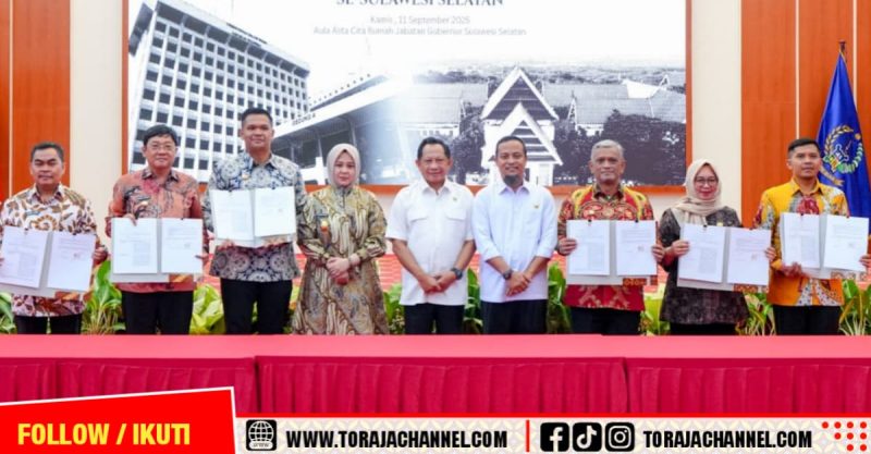 Torajachannel.com, Makassar – Bupati Tana Toraja, Zadrak Tombeg, turut menandatangani nota kesepahaman (MoU) antara Pemerintah Provinsi Sulawesi Selatan dengan pemerintah kabupaten/kota se-Sulsel.