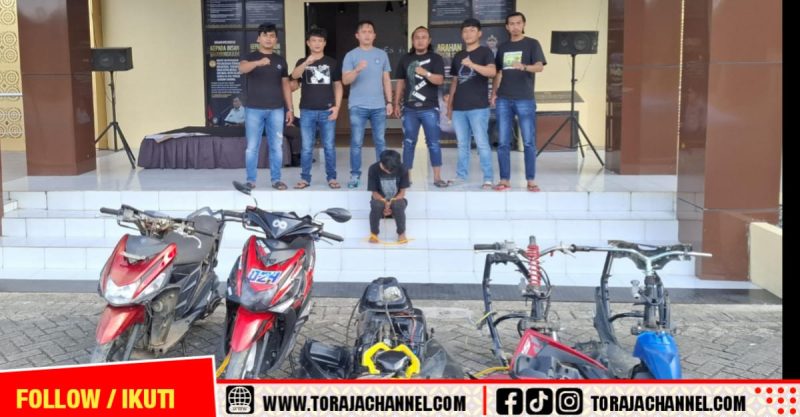 Torajachannel.com, Rantepao–Tim Resmob Satuan Reserse Kriminal (Satreskrim) Polres Toraja Utara berhasil mengungkap empat kasus pencurian kendaraan bermotor (curanmor) yang terjadi di sejumlah lokasi di wilayah Kabupaten Toraja Utara.