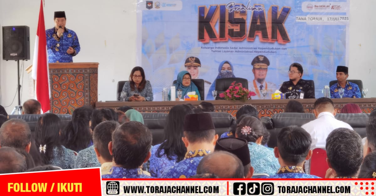 Torajachannel.com, Sangalla Utara–Pemerintah Kabupaten Tana Toraja melalaui Dinas Kependudukan dan Pencatatan Sipil menyelenggarakan kegiatan Sosialisasi Program KISAK (Keluarga Indonesia Sadar Administrasi Kependudukan) yang dirangkaikan…